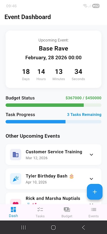 * **スマートタスクチェックリスト:** 会場、ケータリングなどのToDoリストをカテゴリ別に表示します。