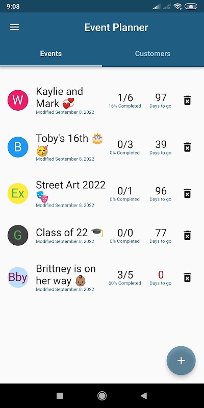 メインの概要画面には、すべてのイベント、イベント日までの残り時間、およびそのイベントの残りのタスク数が表示されます。これは、時間の観点から自分がどのように行っているかを確認するのに役立ち、イベント全体で行動と注意を優先するのに役立ちます.