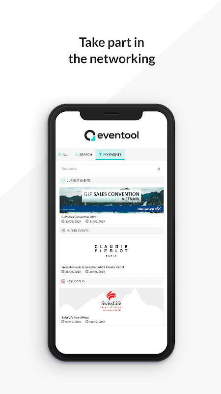 Eventoolアプリケーションを使用すると、簡単にあなたが参加しようとしているイベントと関連するすべての情報を見つけるでしょう。あなたは他の参加者とのネットワークと積極的に参加することができます。