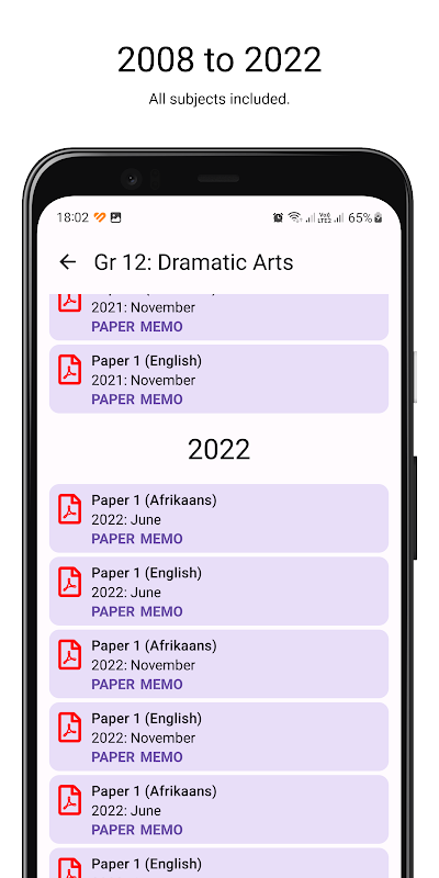 Exam Paper App へようこそ。これは、IEB 試験問題を含む、8 年生から 12 年生 (Matric) の南アフリカの高校生向けに調整された過去の試験問題や専門的なソリューションにアクセスするための究極のリソースです。実際の試験問題の広範なコレクションと、数学、英語、科学、会計などのさまざまな科目にわたる詳細な覚書 (メモ) または採点ガイドを利用して、自信を持って試験に備えましょう。勉強のリマインダーと通知を利用して、整理整頓して集中力を維持しましょう。今すぐ試験用紙アプリをダウンロードして、学業での成功への道を切り開いてください!