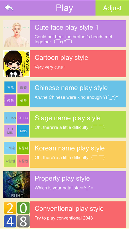4*4の正方形、ゲームの簡単なルール、EXO兄弟は遊びのさまざまな組み合わせました: