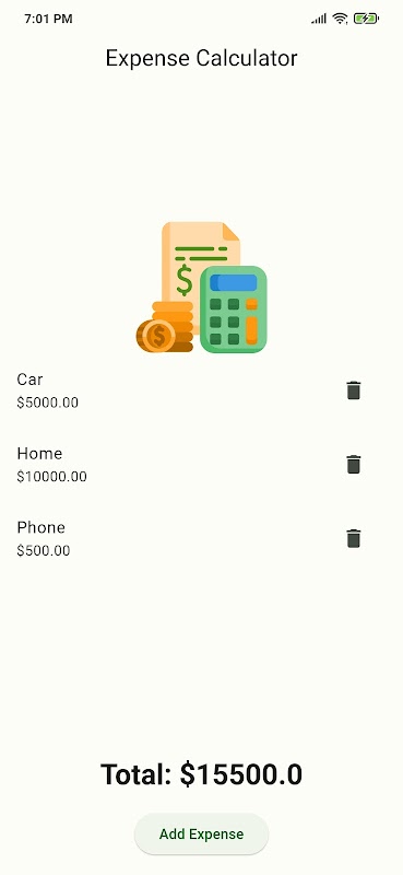 Expense Calculator provides seamless expense tracking. Users can effortlessly create records for each purchase, specifying the amount and description. An efficient budgeting tool, it offers a clear overview of finances, making it easy to manage financial expenditures in everyday life.