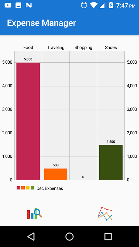 経費マネージャは賢明な費用履歴月を表示します。