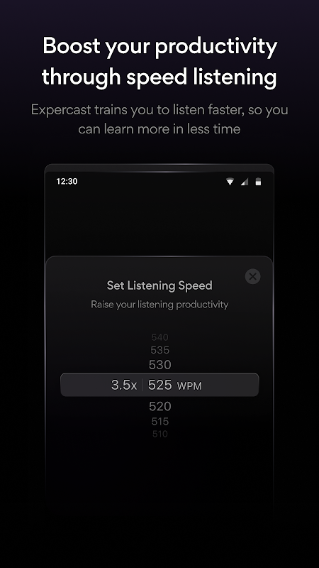 Expercastには、限られた空き時間で最大限の知識を習得できるスピードリスニングトレーニングモードが搭載されています。