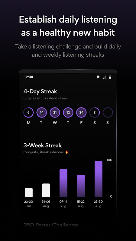 空き時間を有効に活用する健康的な習慣を身に付けるために、30日間のチャレンジに挑戦し、毎日、毎週の連続視聴率を伸ばすように促します。