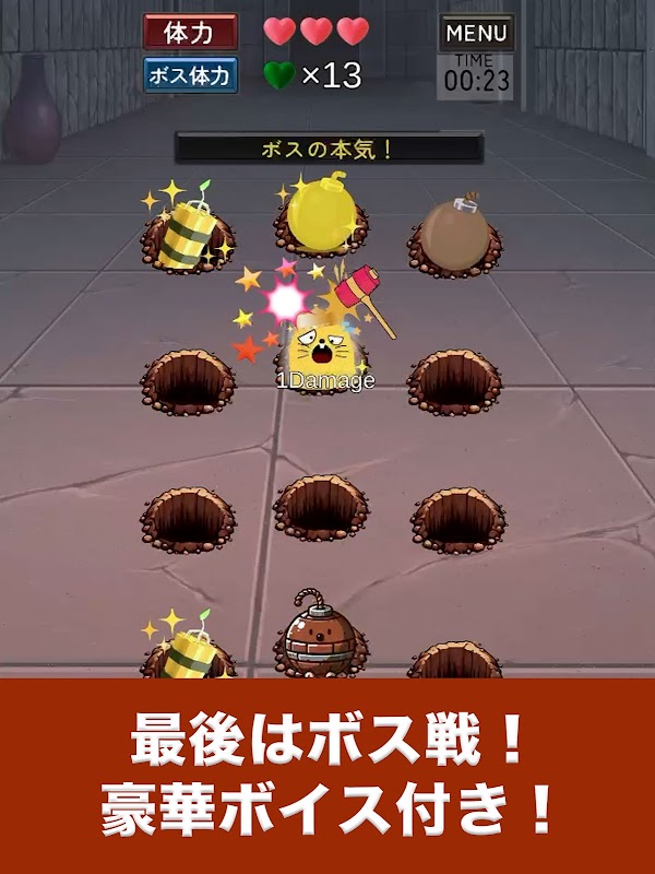 爆弾を回避してたたくもぐらたたきの新定番カジュアルゲーム。連続コンボでスカッと爽快。人ともぐらの戦いを描く壮大なストーリー。各ステージのボスは豪華ボイス付き!