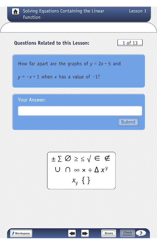 「レビュー·カレッジ代数の準備のために」シリーズは、4(4)のアプリが含まれており、39埋め込まれた教訓を持っています。脳の動作の主要なモードなので、ほとんどすべてのレッスンのパターン構築活動として構成され、パターン統括である。ユーザーは、彼らが行うとき、脳は、パターンのメモリを作成し、レッスンの一般化代数を理解しているので、(脳は全体像を見ているように)、鉛筆と紙を使用してパターンを一般化することが推奨される。アプリも含ま代数を教えるために、基礎となるテーマとしての機能を使用しています。ユーザーが以前に学習代数の既存の長期的なメモリに新しい代数的概念を接続すると、脳はレッスンの新しい概念や手順を理解しています。関数表現と機能の動作は、代数のすべてを接続する。レッスンはオープンエンドの質問で構成され、ユーザーが質問に答えるときに正しい場合、彼/彼女は、正しい応答と口頭で賞賛を受ける。