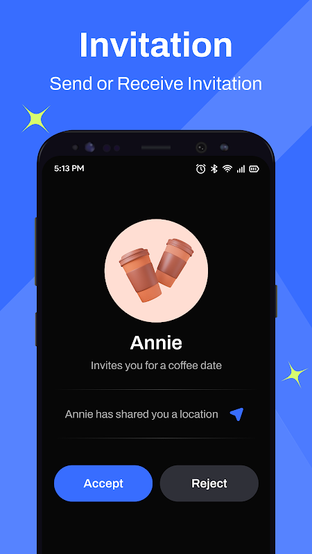 • ユーザーフレンドリーなインターフェイス: メイン画面で最大 10 件の連絡先を簡単に選択し、時間を指定して 1 回タップするだけで招待状 (コーヒーを飲む、ビーチに行くなど) を送信できます。
