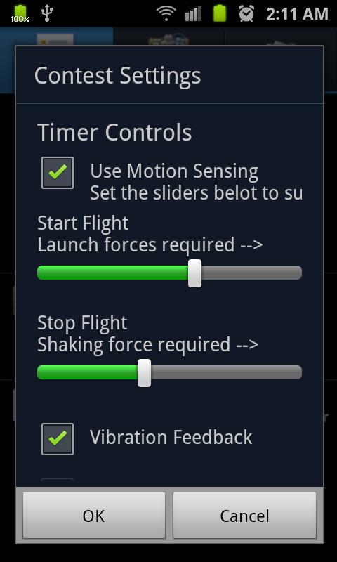 F3Kマスターは、ソフトウェアが起動を検出して、あなたのためのタイマーを開始することができ、Android端末のG-力センサを使用しています。あなたが着陸時にタイマーを停止するように電話を振る。