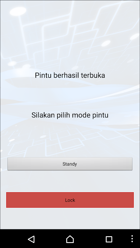 We're using this application to open and close the door. You also can change the actuator and Arduino sketch. When there are a registered face detected, the Android send 'a' character do Arduino. And when you touch the lock button, the Android send 'b' character.