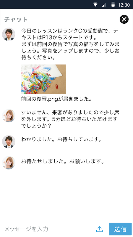 テキストチャットでコミュニケーションできる機能です。ファイル添付もできます。