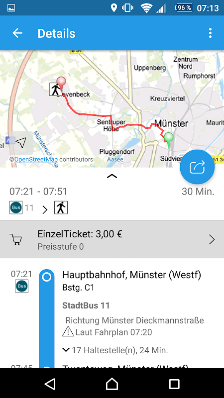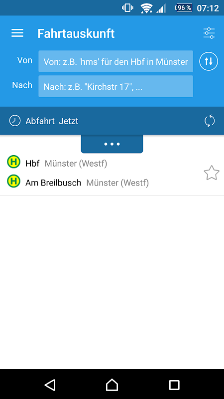 Wann genau fährt der Bus ab? Ist er verspätet oder pünktlich? Fahrplan MS kennt die Antwort. Die komfortable Fahrplan-App der Stadtwerke Münster ist die mobile Fahrplanauskunft für Smartphones. Angezeigt wird die Abfahrt für das Stadtgebiet Münster in Echtzeit. Zum Beispiel für die vom eigenen Standort aus nächst gelegene Haltestelle. Das heißt: etwaige Abweichungen vom Fahrplan sind schon berücksichtigt. Auch über Münster hinaus sind Fahrplanauskünfte für Bus & Bahn abrufbar. Der mobile Fahrplan der Stadtwerke Münster ist kostenlos und bietet zusätzlich Karten, Fahrpreise und mehr für Androide-Geräte.