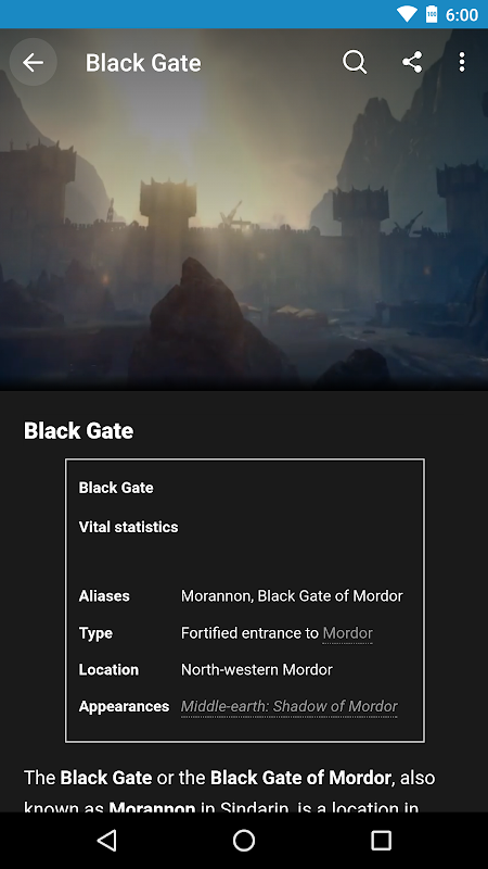 Fandom's app for Middle Earth: Shadow of Mordor - created by fans, for fans. The Middle Earth: Shadow of Mordor Game Guide features hundreds of pages of content created by gamers just like you. You can expect to see hundreds of pages of content created by fans just like you. Find articles on Middle Earth:Shadow of Mordor, including quests, locations, artifacts, and inhabitants. Check out the information on runes, lithariel, and abilities. No other app offers this amount of accurate insights, tips and game information with useful companion-play features such as: