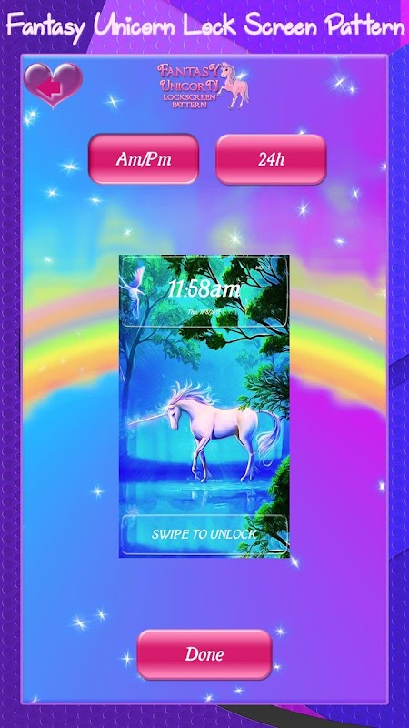 free無料の「Fantasy Unicorn Lock Screen」をダウンロードし、あなたの携帯電話やタブレットを高度に保護する。
