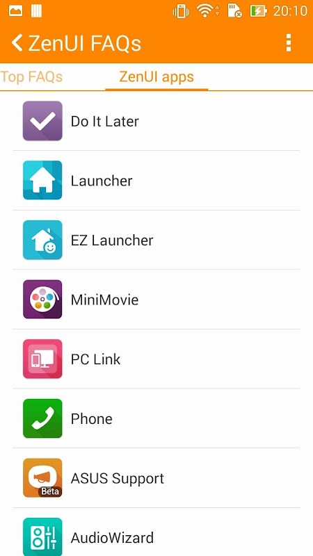 ► ZenUIよくある質問 ZenUIのアプリの下でアプリごとに作成するFAQやフォーラムを通じて、より具体的なユーザーエクスペリエンスを提供します。これらのフォーラムでは、あなたは、ASUSサポートチームは、あなたが次のアップデートで見てみたいどれ知っているように、お気に入りのトピックに投票することができます。 ZenUIのFAQも人気トラブルシューティング情報のトップよくある質問を備えています。