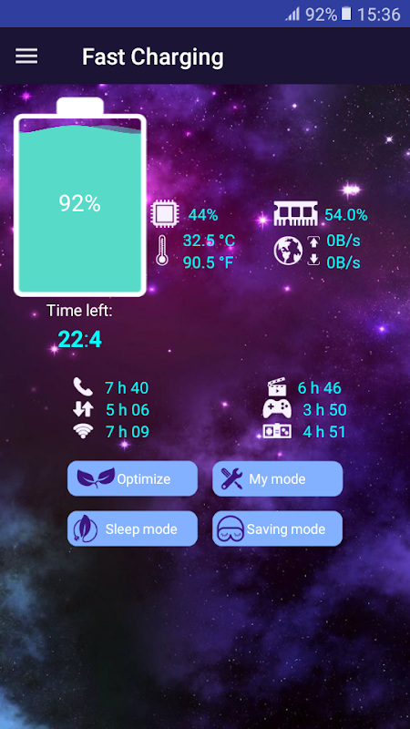 The longer you charge your phone, the sooner your phone become voltage depression. Let press “Optimize” button to charge your device fastest. System will automatically choose suitable charging mode for your phone.