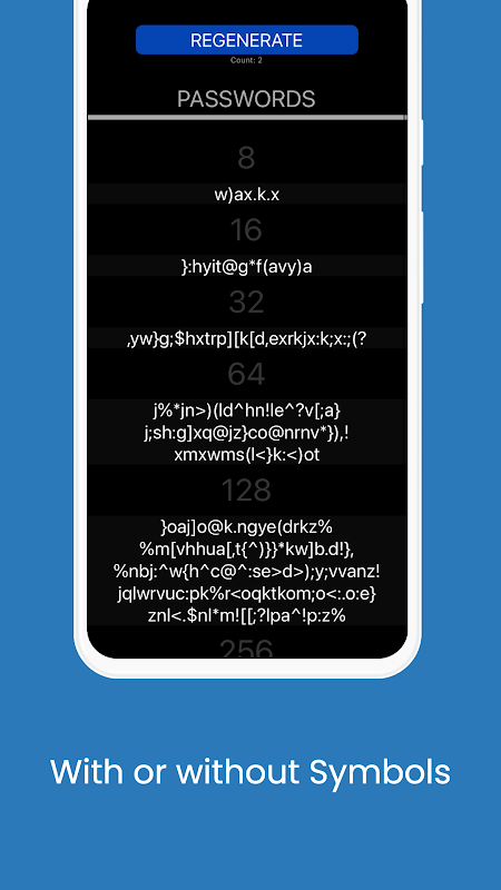 Fast Pass Genは、8、16、32、64、128の一意の文字パスワードを即座に作成します。初めてアプリを開いたとき、シングルクリックでクリップボードにこれらのパスワードのいずれかが表示されます。次回アプリを使用するときに利用できるパスワード設定をカスタマイズするには、さらに2秒かかる場合があります。