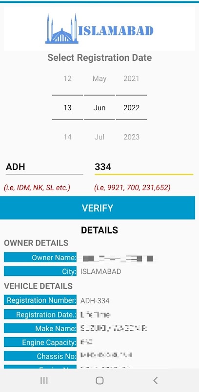 Fast Vehicle Verification need is getting essential now a days, also you can check details of your own vehicle in Pakistan region mentioned below by using Fast Vehicle Verification app