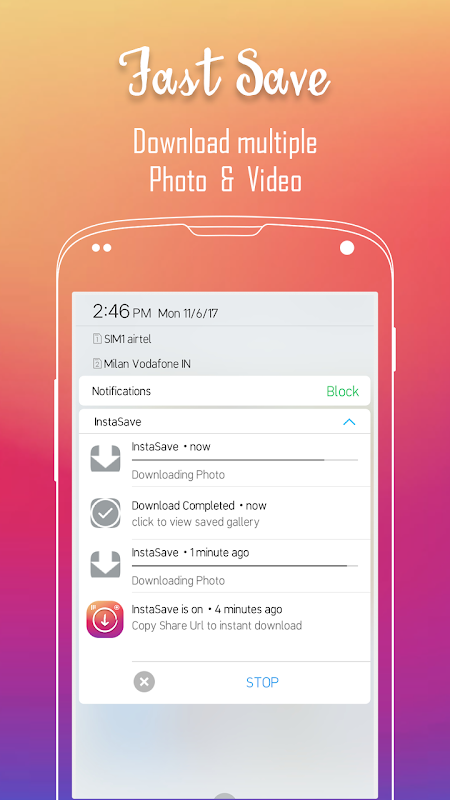 ✔ Photos/videos will start downloading automatically in notification.