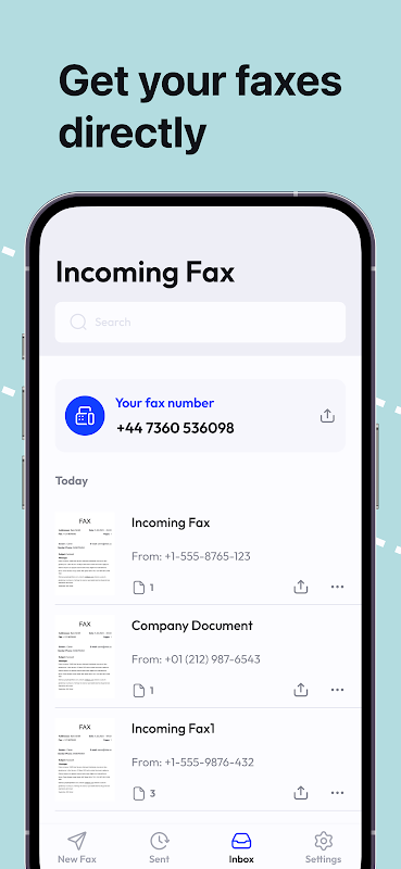 あなたのデバイスをFAX機に変えましょう! カメラでドキュメントをスキャンし、世界中にファックスを送信します。