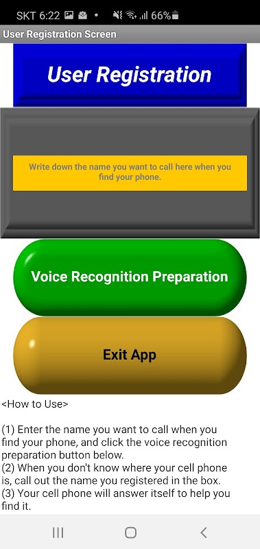 When this app is running, your phone answers when you call the name you want to register for the app.