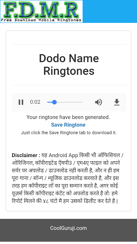 Note: FDMR means free download mobile ringtones so dont get confused.