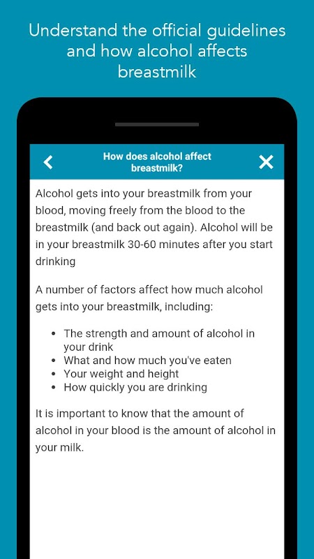 - あなたの母乳にはアルコールがあってはならないまでの時間を計算し、あなたの身長と体重に基づいて、