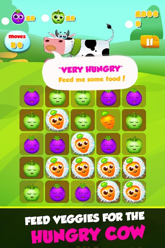 動物(飢えた牛)は完全に遊ぶことができます、空腹の動物を幸せに農場の野菜を食べることによって、新しいマッチ3パズルゲームを楽しんで遊んでください。