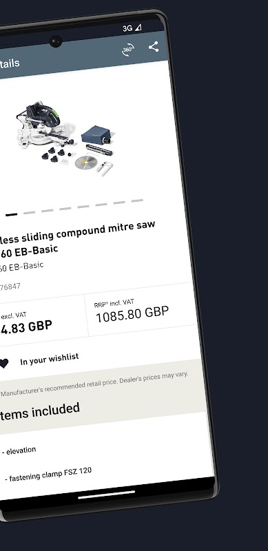 -START: 適切なマシン、アクセサリ、消耗品を簡単かつ迅速に検索: 統合された Festool 製品カタログを使用して、登録済みの Festool ツールを介して直接検索バーを使用するか、バーコード スキャナーを使用します。