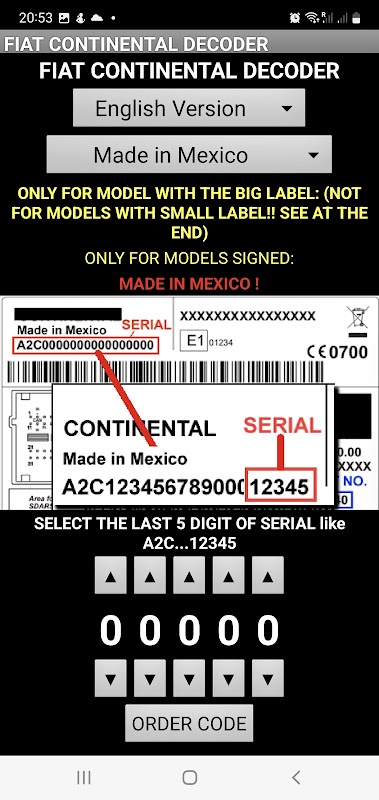 シリアル番号A2CとフィアットコンチネンタルVP1 VP2無線コードデコーダ...