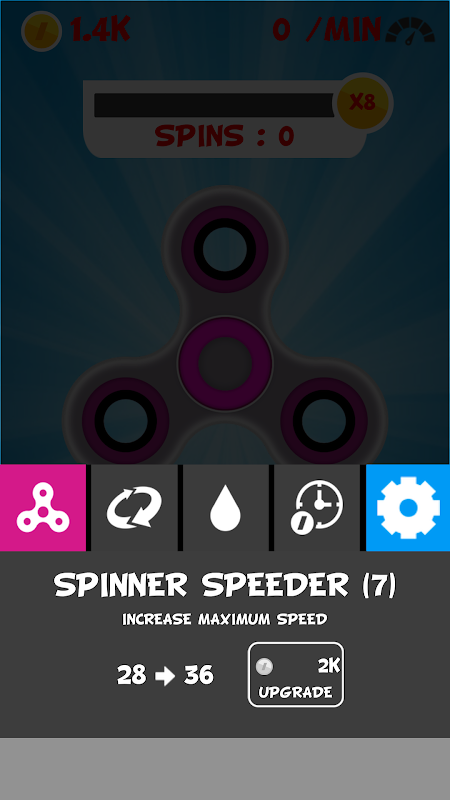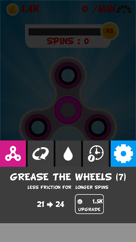 Use your money to upgrade your spinner and obtain some money!