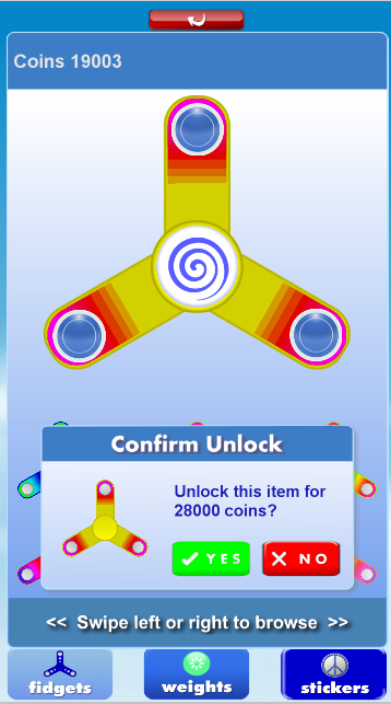 You can earn coins and rewards by playing Fidgetfy everyday. The rewards can be coins, new spinners, weight elements and stickers, you can get it for free just by playing Fidgetfy.
