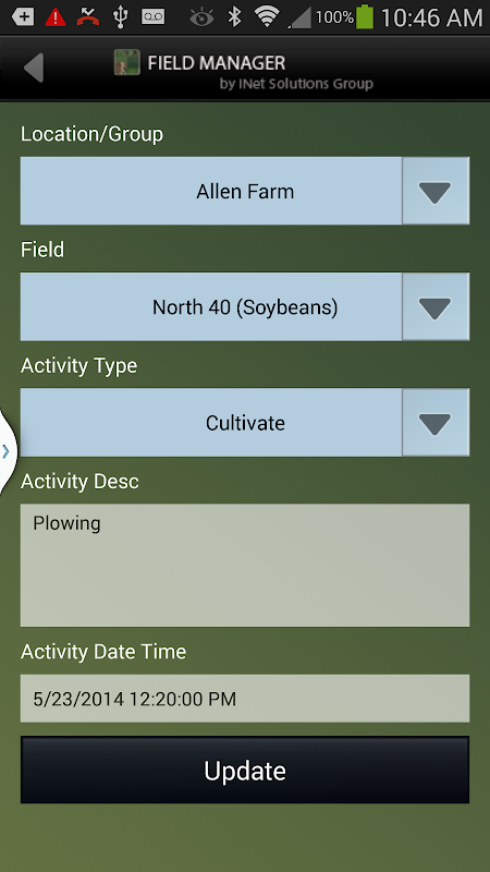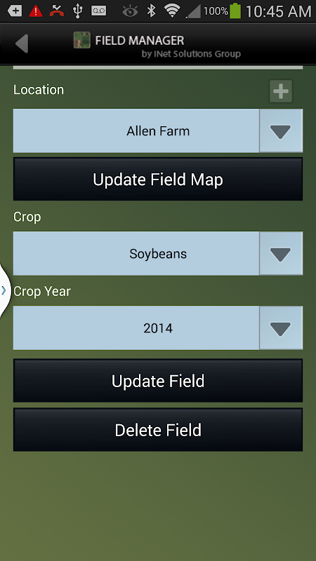 The Field Manager is a free tool developed for grain farmers that allows them to manage their field-level information. Field Manager lets the user easily create fields, set information, and track their activity throughtout the year.