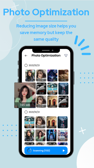 - ビデオと写真を最適化して、品質を損なうことなくメモリを節約します。