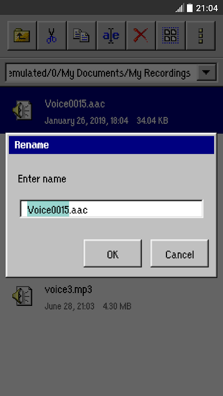 クラシックなグラフィックユーザーインターフェイスを備えたレトロなファイルマネージャー
