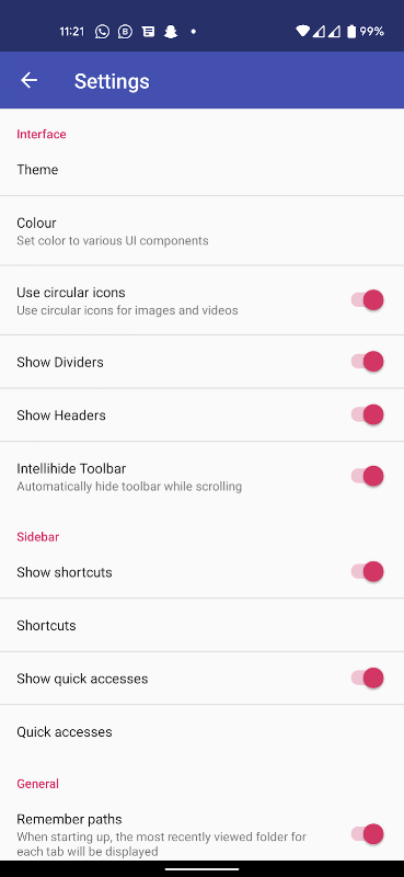 Droidファイルマネージャーは、ファイルやフォルダーに対してアクションを実行するための最良のオプションです。ユーザーインターフェイスはとてもフレンドリーで、すべてに簡単にアクセスできます。このDroidファイルマネージャーを使用すると、ストレージ全体を非常に快適に管理できます。