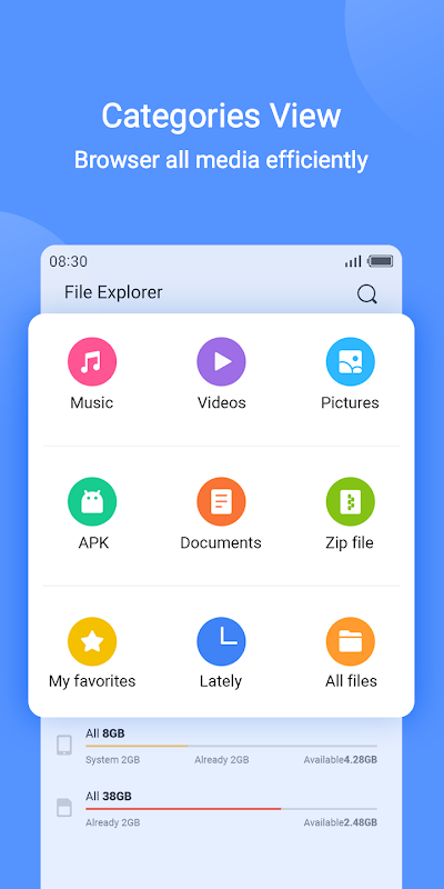 すべてのファイルがモバイルシステムに隠されなくなりました。ファイルマネージャを使用すると、ファイルを簡単に分類し、ファイルを分類できます。また、グローバル検索、ファイルの移動、削除、開く、共有、名前の変更、解凍、コピー&ペーストなど、多数の優れた機能もサポートされています。