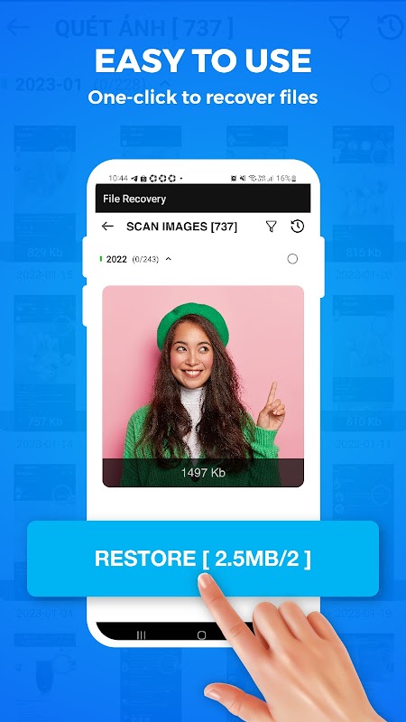 ファイル回復アプリケーションは、復元できるすべての隠しファイルをリストします。回復する必要があるファイルを選択し、ワンタップで簡単に回復しましょう。