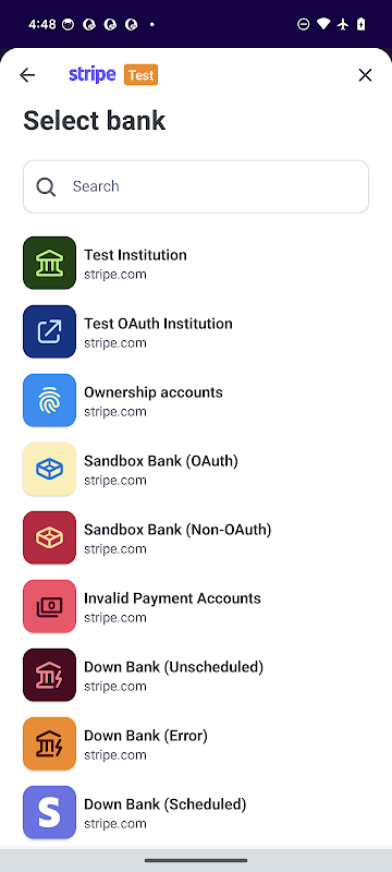 Android 用 Financial Connections SDK を紹介するサンプル アプリ。