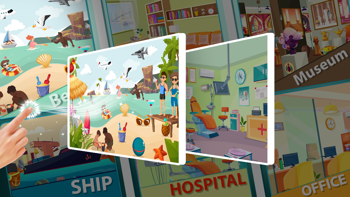 「間違い探し:スポットディフ」は、アプリの魅力的なデザインで、素晴らしい体験を提供します。レベルをプレイするごとに、まるで別の世界へ仮想的に移動したような気分になります。「間違い探し:スポットディフ」では、ビーチ、動物園、モール、クルーズ船など、様々な場所を仮想的に訪れることができます。