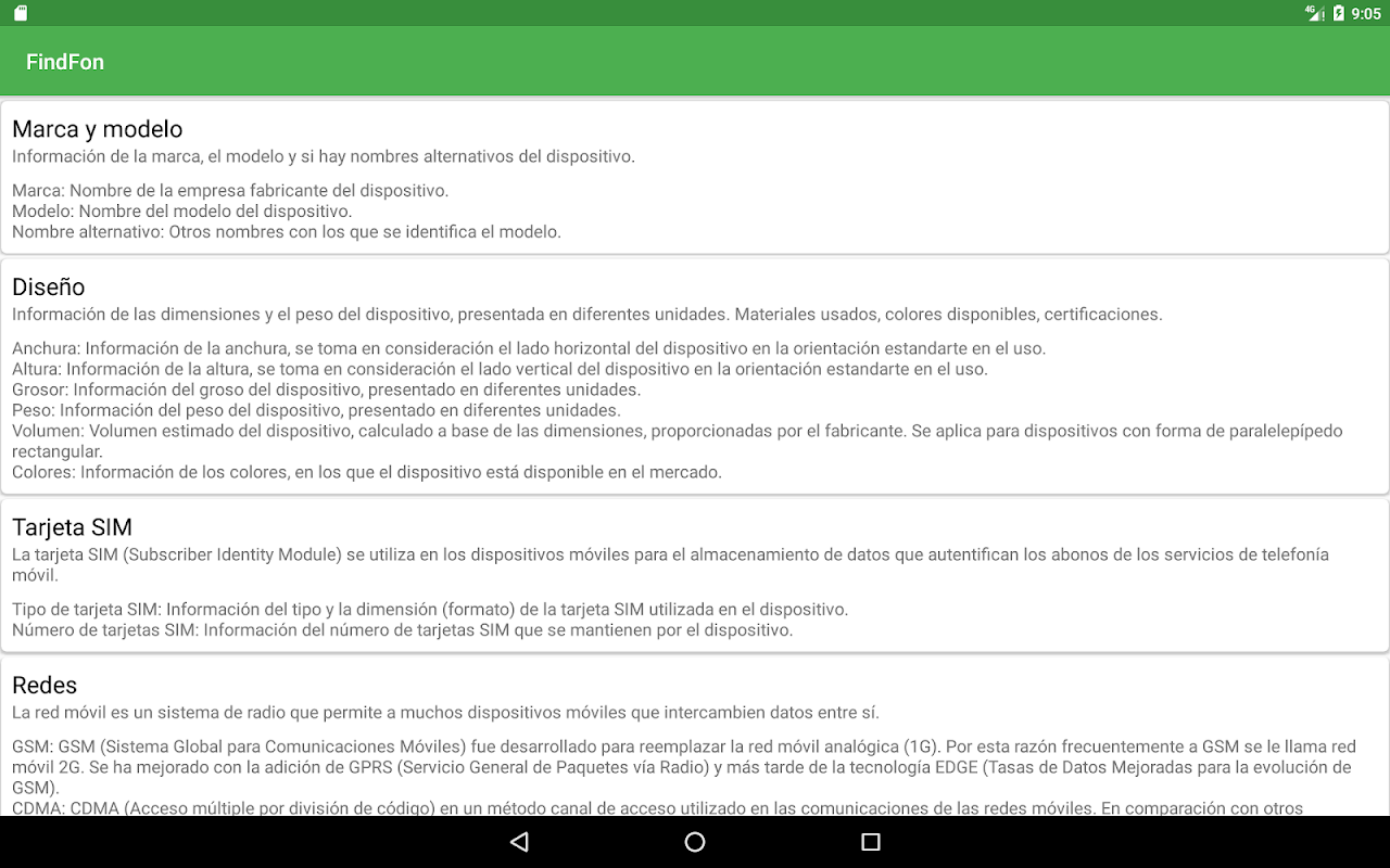 FindFone es una aplicación que permite obtener las especificaciones de cualquier telefono inteligente. Entre las posibilidades que brinda la app es que puedes exportar las características del teléfono seleccionado.