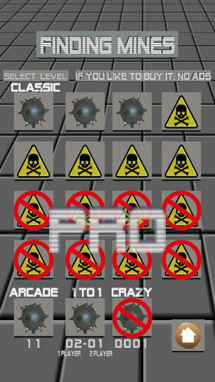 * This version of "Finding Mines" is free, with ads and limited in games and difficulty levels. If you like to buy the full and ad-free version of "Finding Mines Pro".