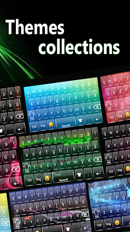 キーボードテーマを選択して、15以上のテーマからフィンランドのキーボードに新しいルックアンドフィールを設定します