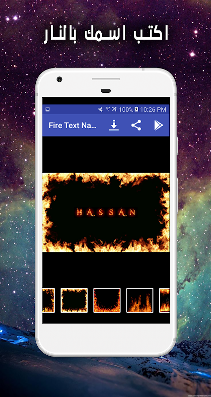 Choose fiery frames that suit your photos perfectly and wrap them up. Get fiery effects to your pictures using “Fire Name Art 3D ”.