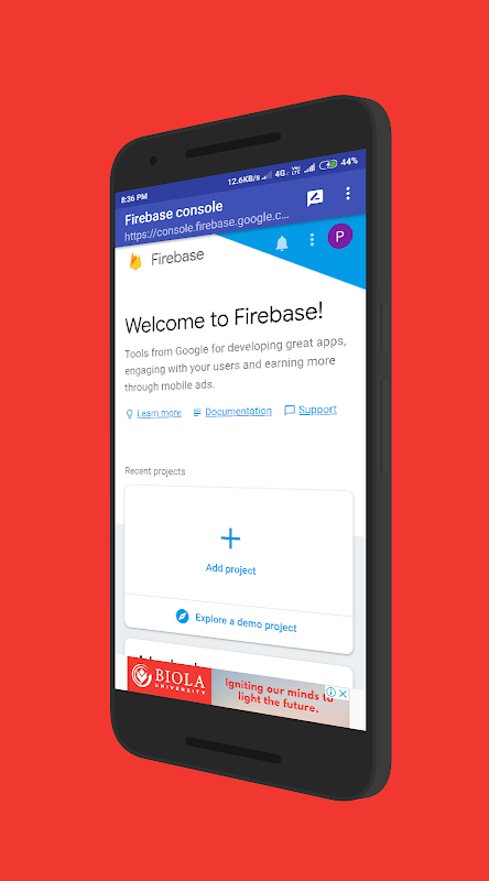Firebase console lite App(2MB).Use Firebase app to access your Firebase console