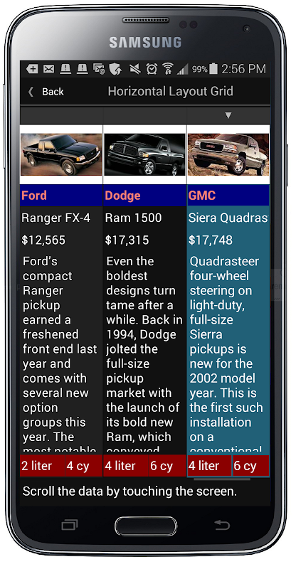 この FMX ウォーク スルーでは、64 ビット デバイス用の FirePower X3 を使用します。この Delphi FireMonkey アプリケーションは、埋め込みコントロール、複数選択、クリック可能な列ヘッダー、エクスポート、スムーズ スクロール、自動生成されたレコードビュー、ツリービューなどを備えた 2 つの真のデータ認識グリッドを含むウォークスルーのコレクションを表示します。このデモには、FirePower の新しい共有サービス、カラー コンボ、およびアクティビティ ダイアログの使用も含まれています。このアプリは、FirePower の検索コンポーネントとフィルタリング コンポーネントを使用するだけでなく、ユーザの入力の整合性を検証するためのサポートも使用します。このアプリで使用されるコンポーネントは InfoPower VCL コンポーネントに似ていますが、モバイル スペースを活用するように特別に設計されています。