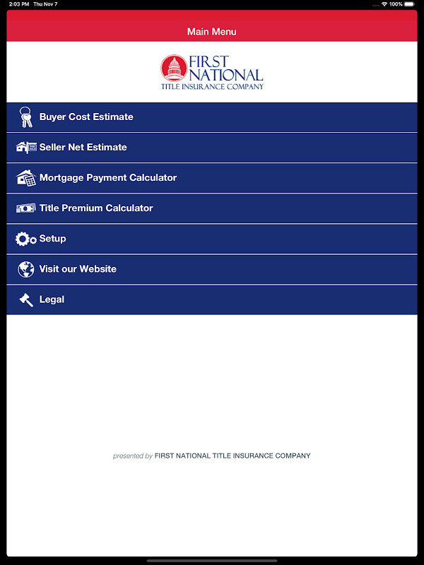 FIRSTApp TX is a real estate title mobile app that provides easy access to a mobile-friendly version of First National Title’s online closing cost calculators which include Texas Title Premium Rates, Mortgage Payments, Buyer Cost Estimates, & Seller Net Sheets. FIRSTApp TX comes preloaded with closing cost calculations by city/county with the real estate professional in mind by allowing them to quickly generate calculations from their iPhone and iPad when they are on the go. It also allows the user to email/save/print calculations for easy access and to send to clients.