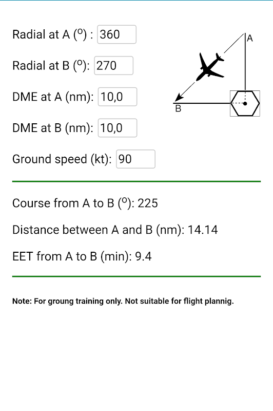 Calculates track, distance and EET to navigate between two positions A and B. each position is defined by its fix which, in turn, is determined by a VOR radial and its DME.