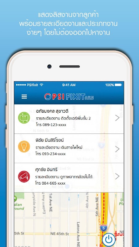PSI Fixitアプリケーション関数呼び出し修理工タイプ。必要な作業のタイプと一致します。