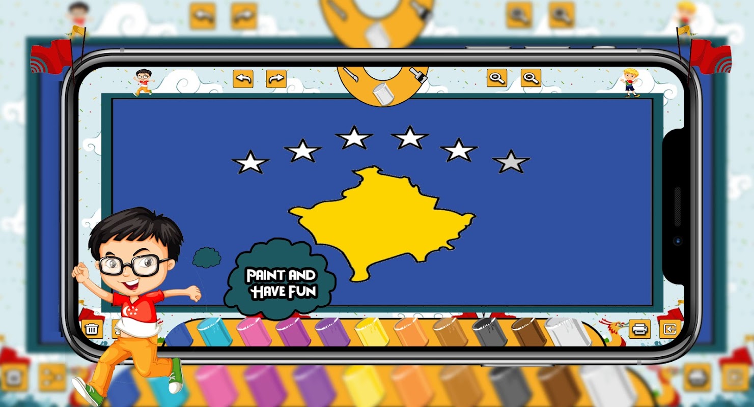 Flags Coloring アプリへようこそ。 2 つの異なるゲームモードで数十の写真とレベルがあなたを待っています。